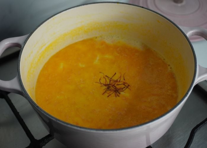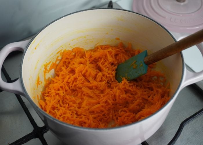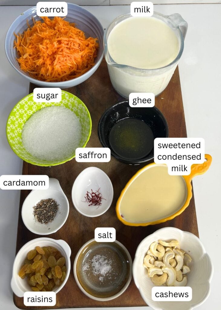 - Heat ghee in a pot. Add in carrots and saute for 5 minutes. Pour in milk and mix well. Cook this for 15 minutes stirring often.