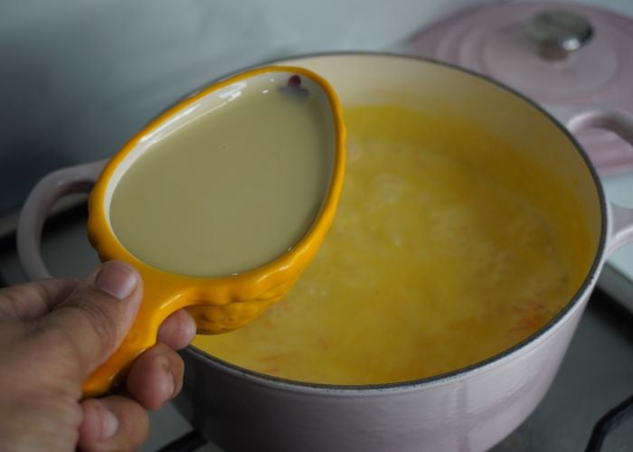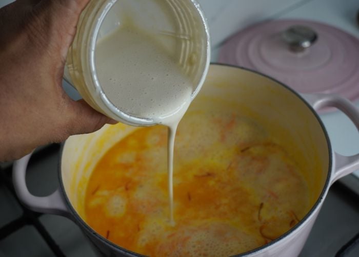10)Add in the cashew puree. Mix this well and Cook all this for 10 more minutes.