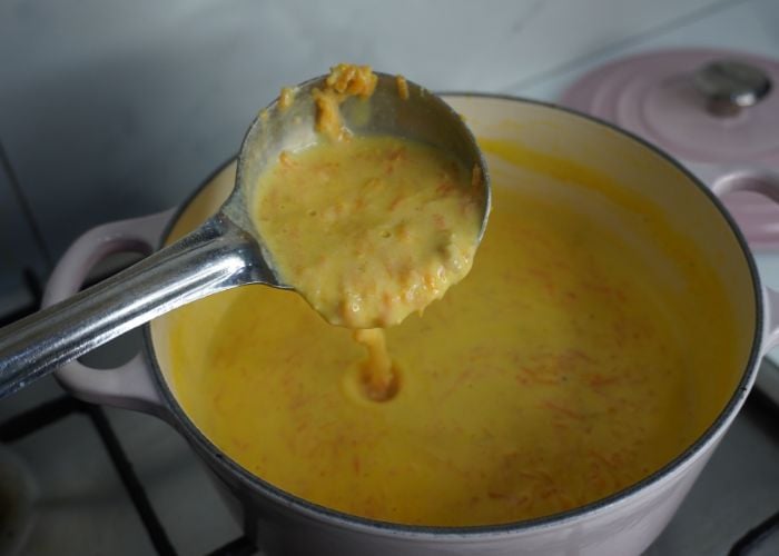 This recipe is always a hit because the carrots cook quickly in milk and do not need any extra water. Some portions of the cooked carrots are taken and are blended to a smooth mix, while the remaining portion has a chunky and raw texture.