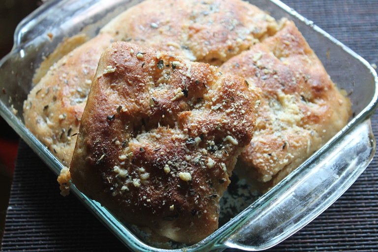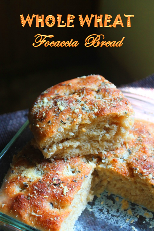 100% Whole Wheat Focaccia Bread Recipe with step by step pictures. This is made with Flour and Parmesan Cheese.