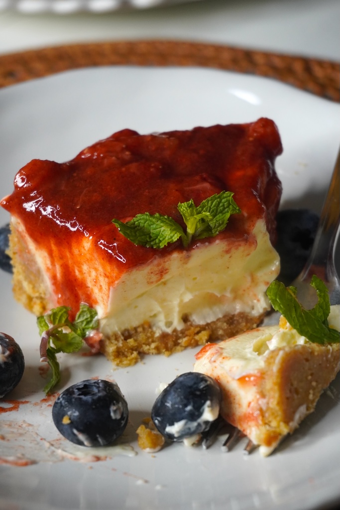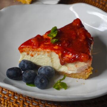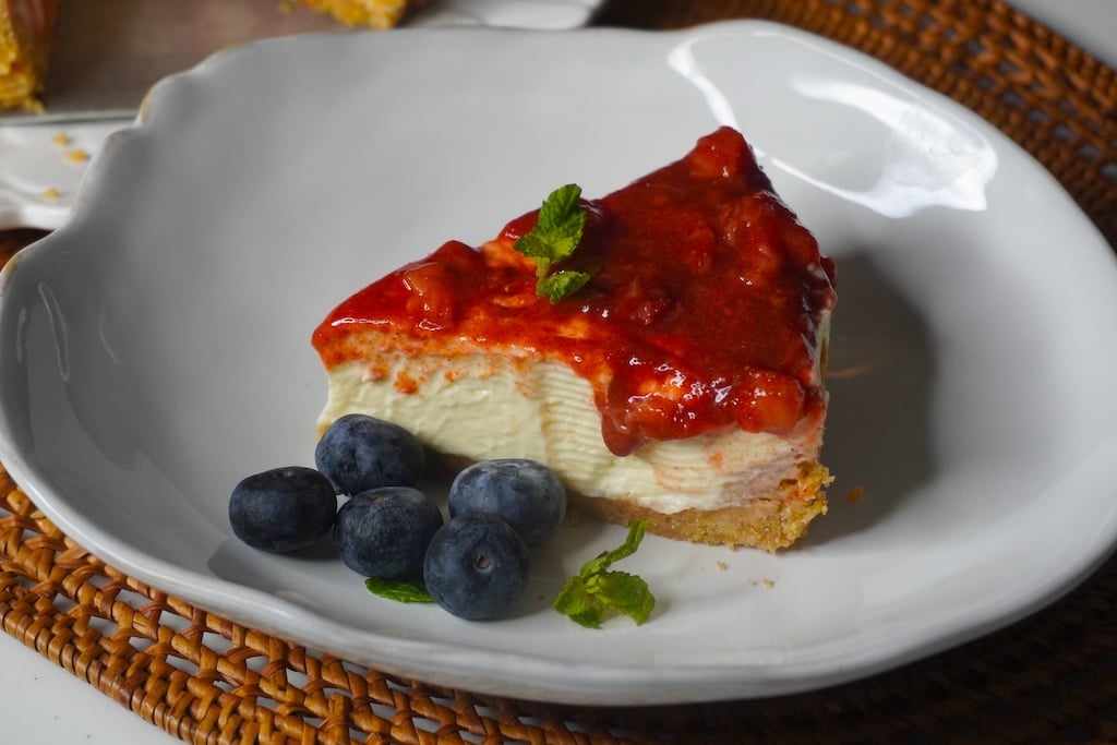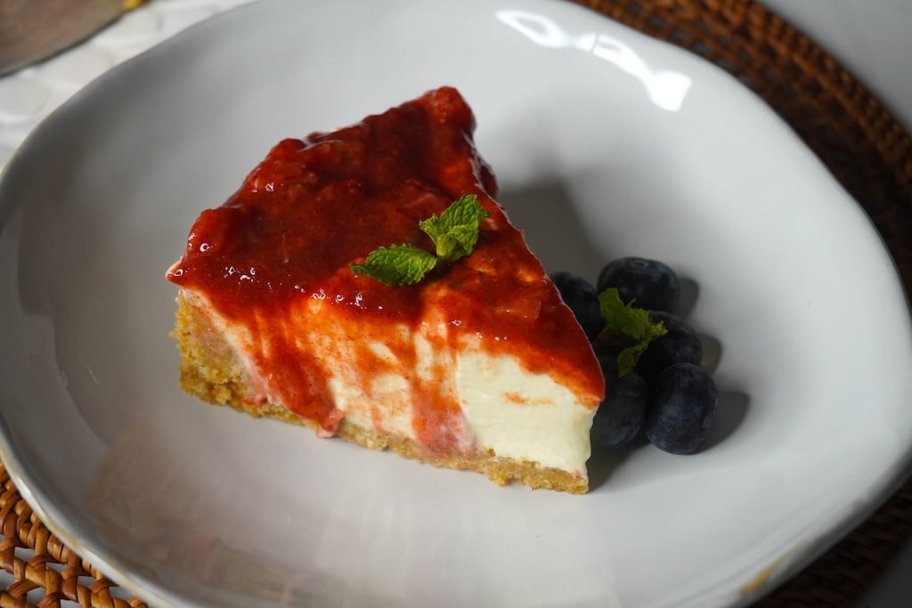 Cheesecake has a tart, sweet, creamy, and tangy flavour! Strawberry