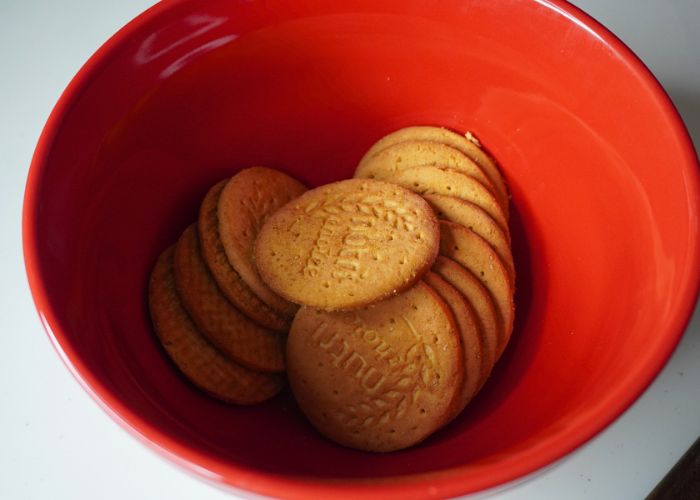 1)take digestive biscuits in a bowl. Instead of digestive biscuits, you can use graham crackers or any light biscuits.