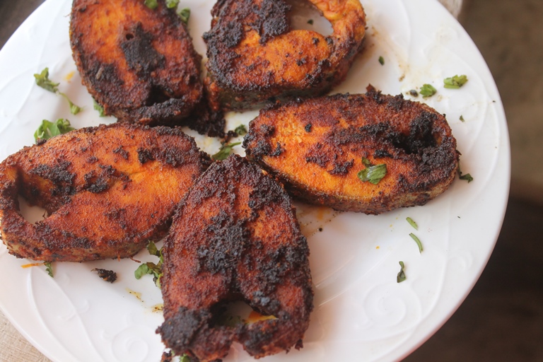 This is a simple fish fry but it taste amazing. The taste of this dish depends on the fish you use. Use vanjaram fish for best taste. You can use any white fleshed fish as well.