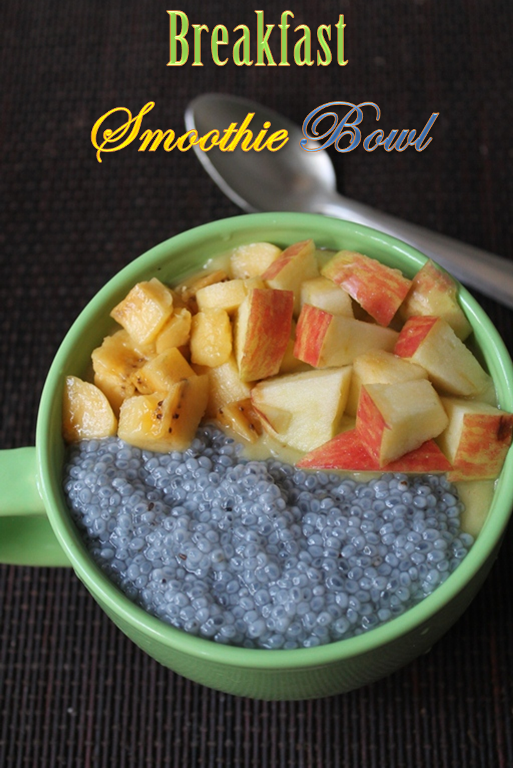 Avocado & Banana Smoothie Bowl recipe with step by step pictures. This smoothie is rich, creamy, and thick with Avocado and Banana which is perfect to serve up in a bowl, topped with apple and basil seeds.