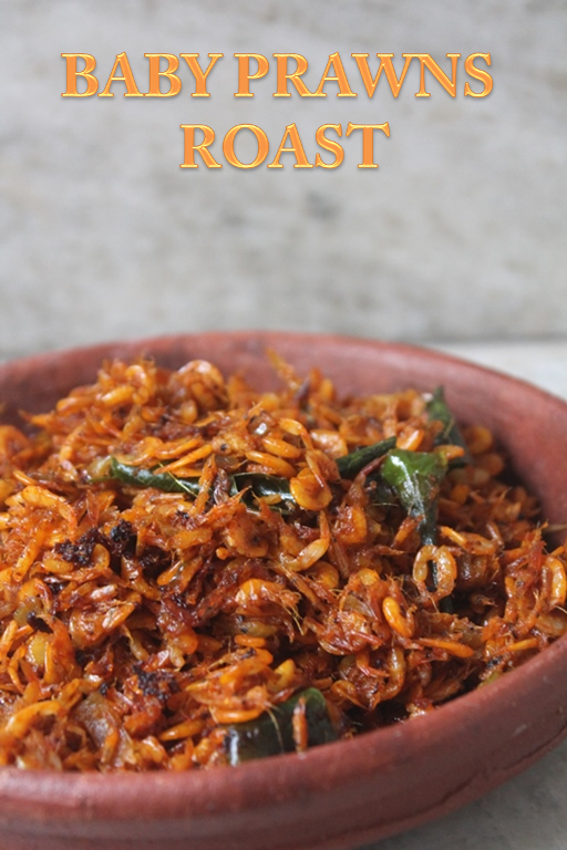This is my second recipe using these baby prawns. I made a simple roast using it and it turned out pretty good. Hubby told that he loved this more than the thoran which i used to make.