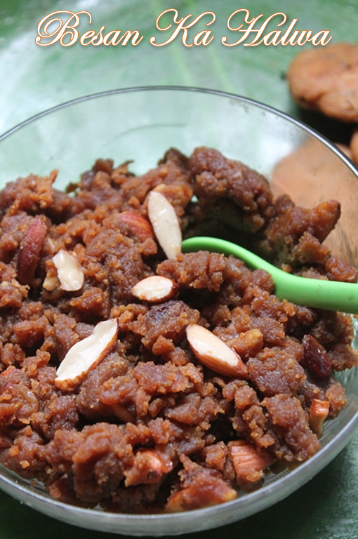 Besan Ka Halwa Recipe with step by step pictures. Delicious Besan ka halwa is made with gram flour, ghee, sugar and nuts. This makes a perfect sweet for any festive occasions.