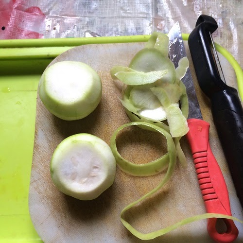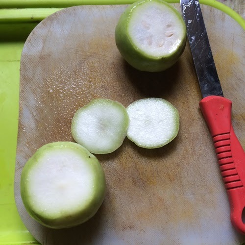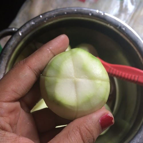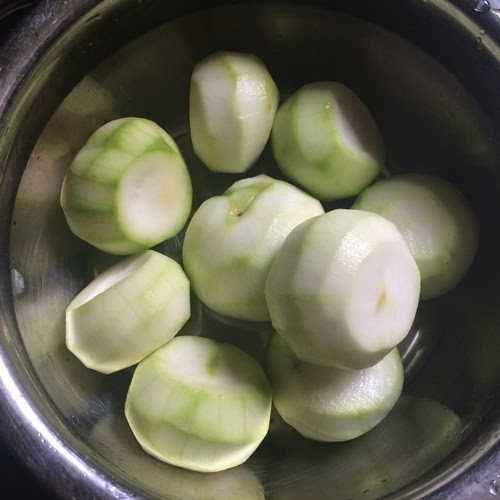 - Wash and peel tinda, cut the top and bottom off. Make slit in them.
