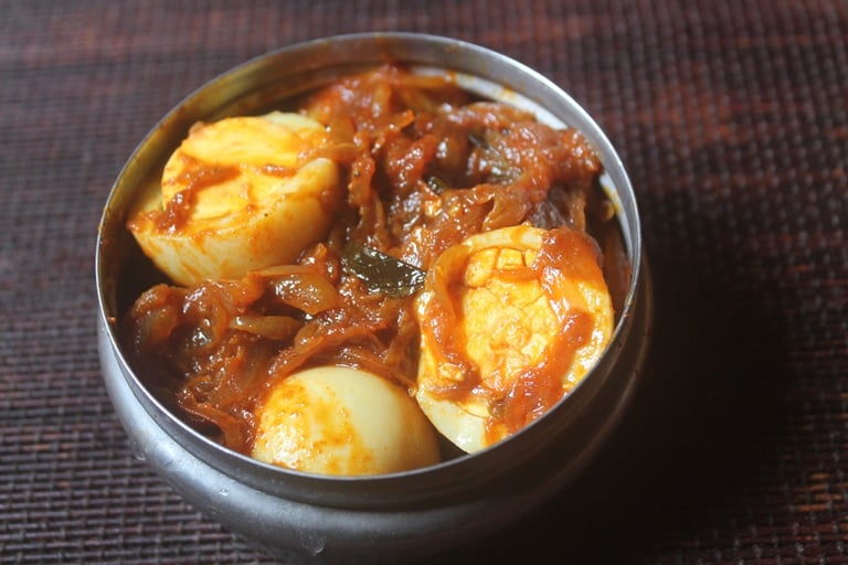 Egg roast, also known as Kerala Nadan mutta roast, is a popular dry curry recipe that may look simple yet tastes incredibly flavourful. The roast is made by slowly cooking the onion until it beautifully caramelizes, which adds a natural sweetness that balances perfectly with spices and boiled eggs. This egg roast is loved by Kerala people where they enjoy it with almost everything right from appam, parotta, idiyappam.
