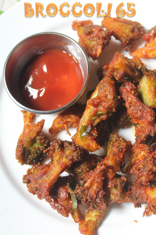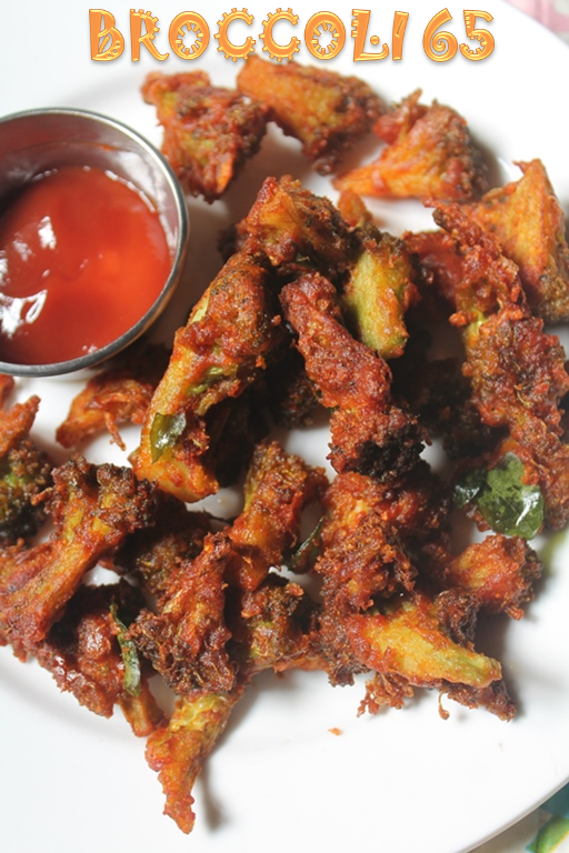 Gobi 65 is one of the dish we make in our house more often than anything else. Whenever we buy cauliflower this dish has to be done. Amma insist me to make this always, because this was her favorite. I already have gobi 65 recipe , cauliflower fry recipe too.This time i decided to try it with broccoli and it turned out delicious.