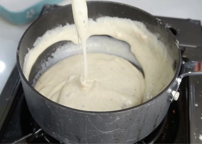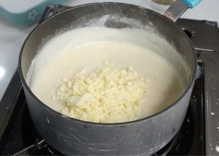 10)Mix and cook on low until the cheese melts. White cheese sauce is ready.