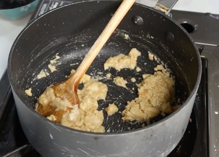 5)Mix and cook until the flour toasts lightly and smells good.
