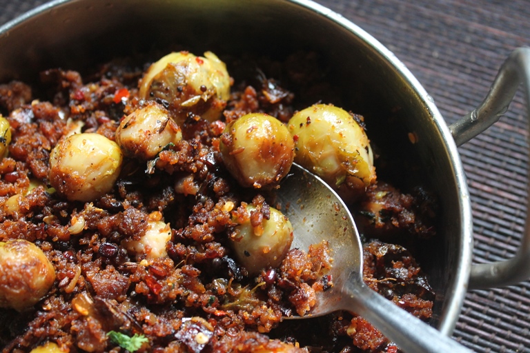 Brussel Sprouts Sabji Recipe with step by step pictures. This recipe is an easy and quick stir fry which can be served with steamed rice.