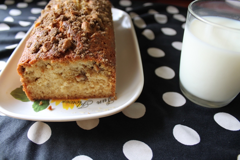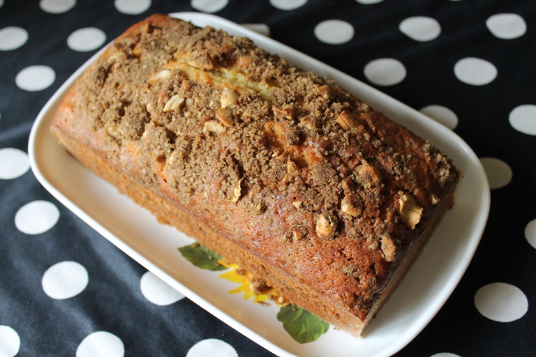 Replacing the butter with oil makes this cake incredibly light. I also love the addition of spice streusel (I used home made masala from your chai recipe). At first the loaf looks like such an innocent teacake, but then you suddenly feel the "punch" and your mouth gets all warm from the spices. Yum!