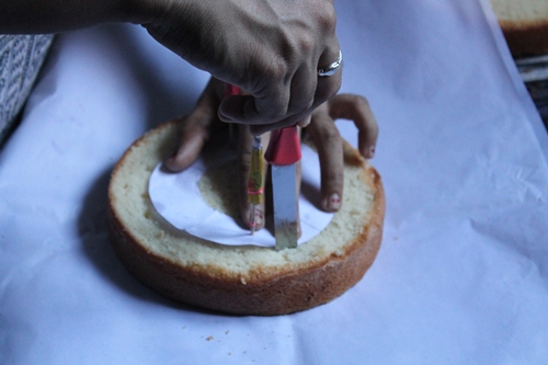 | now lets make the template to cut the cake..first place the cake pan over the paper |