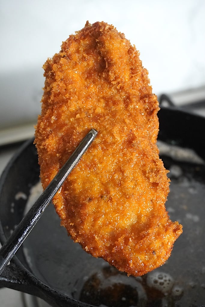This pounding method makes the chicken breast super juicy and moist when fried.
