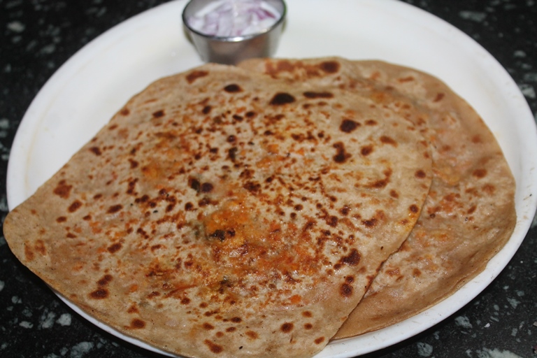 This is one paratha which i loved a lot. It had a beautiful orange colour to it, plus it tasted so yummy. You can make this, cut into little triangles and give it to your kids, they will love it for sure.