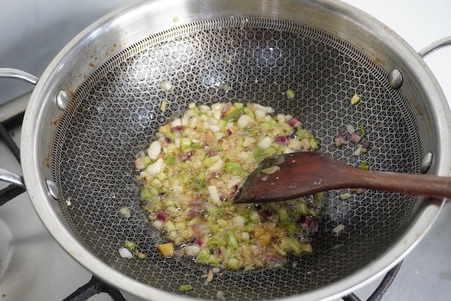 5)Stir fry for 1 minute until the mixture is fragrant.