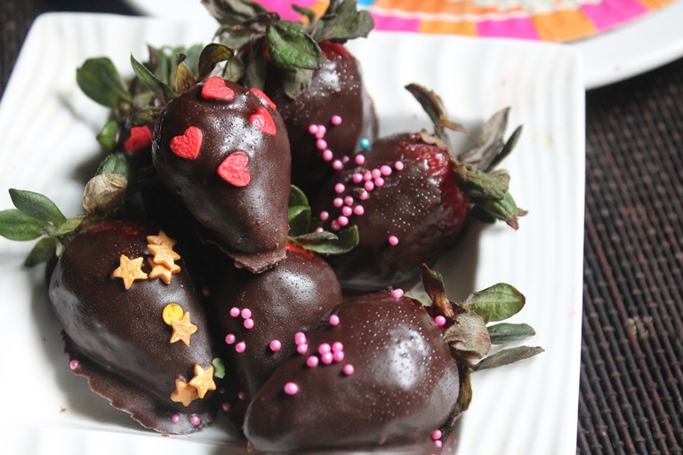 Make sure to choose ripe juicy and sweet strawberries for this recipe. Since the taste depends on the quality of chocolate and freshness of strawberries, it is important to use the best one.