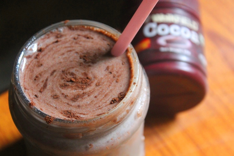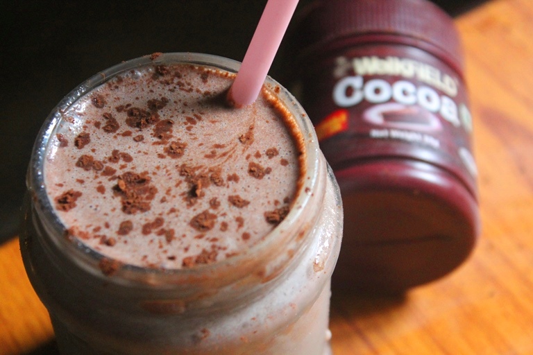 - Take milk in a blender or bowl, add the cocoa mix and use a hand blender and blend till creamy.
