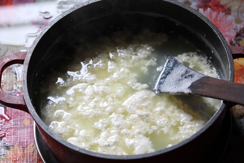 | Now it is completely curdled, you can see a light greenish kind of water has separated, this is the correct stage |