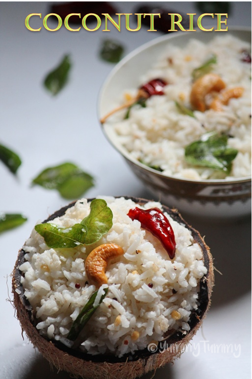 I love coconut rice. Amma makes it often for lunch on weekdays, since it is so easy peasy to make..Actually it taste so great as it is..So you don't need any side dish with this..If you want some thing to go also with this, you could make Potato Roast.