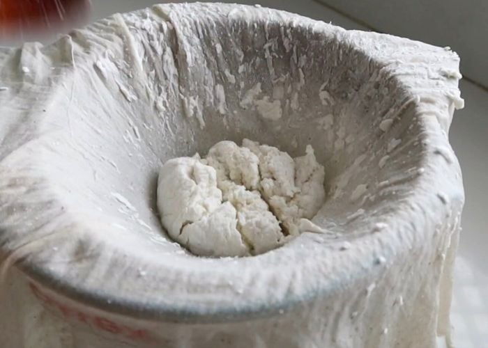 - Now gather the cheese cloth and strain as much water as possible.
