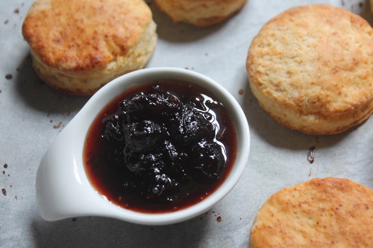 It is made using fresh cranberries, but i used dried and the result was amazing. I boiled it in cranberry juice and the jelly turned out yum. You can have it with toasted bread, bread rolls, biscuits, roast turkey or chicken.