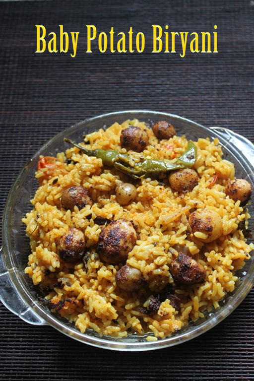 Small Potato Biryani Recipe with step by step pictures. Spicy and delicious biryani made using baby potatoes and spices.
