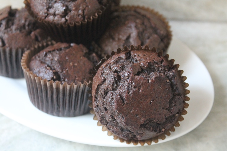 I love baking muffins, not only they are delicious. But they are a breeze to make. You just measure few ingredients and dump them into a bowl, mix it and bake it. This is one kind of recipe, no creaming of butter is involved. It calls only for oil but the muffins turns out so moist and delicious. Not to mention so chocolaty.