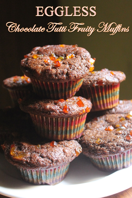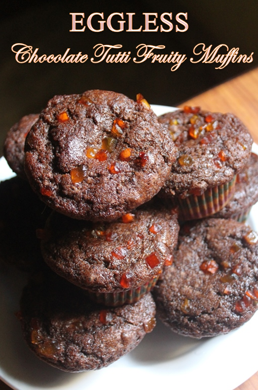Eggless Chocolate Tutti Fruity Muffins Recipe