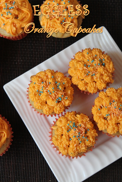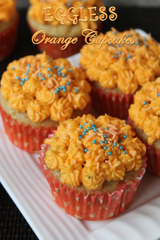 Eggless Orange Cupcakes Recipe with step by step pictures. Soft and fluffy cupcakes which taste so delicious.