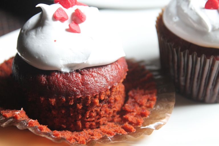 Red velvet cupcakes with step by step pictures. Red velvet cupcakes made using beetroots for natural colour.