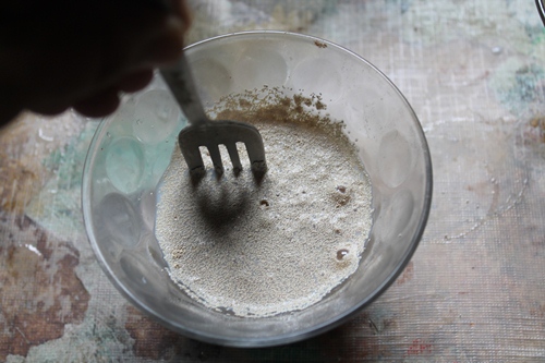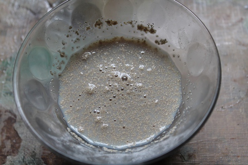 - Take yeast, sugar and warm water in a bowl and mix well. Let it stand for 5 mins.