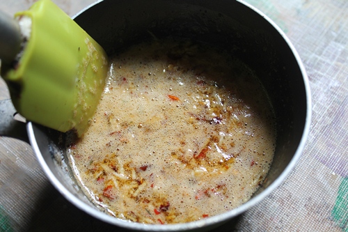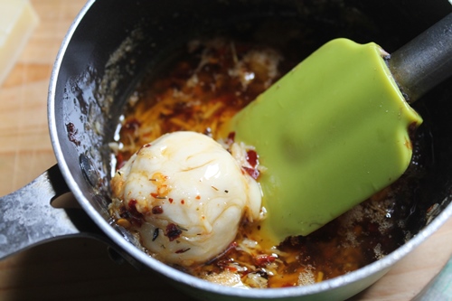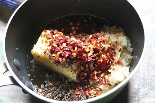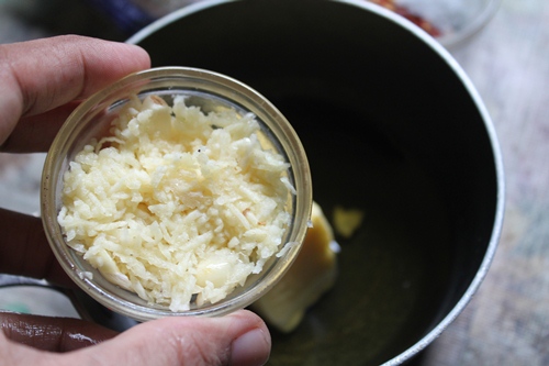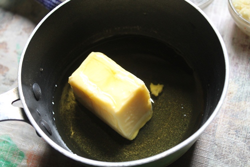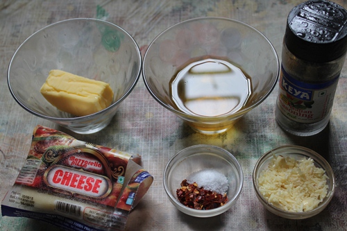 - Now lets make the garlic oil. Take all the ingredients for the oil and heat gently till the butter is melted. Remove it from heat and set aside.