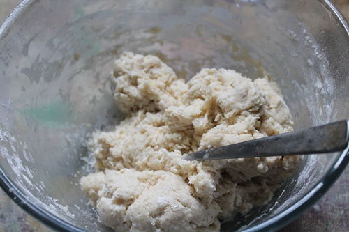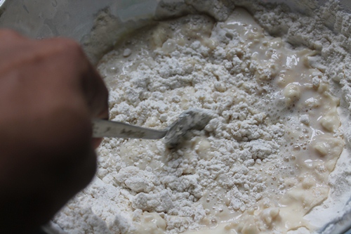 - Now add in wheat flour, salt and mix well. Add oil and knead well for 1 mins.