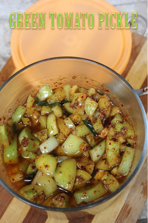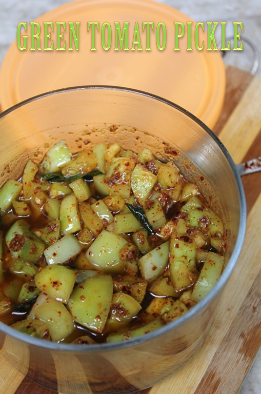 Green Tomato Pickle Recipe with step by step pictures. this is made with Green Tomato and salt. This pickle taste amazing with rice.