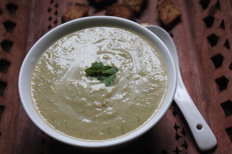 Broccoli soup is to do list for quite sometimes. It is quite rare to find broccoli in my place. So whenever i see them i used to pick couple of them and try new recipes using it. Each time i will think of making soup using them but i was a bit worried how will it taste and i kept on postponing. I made this soup very healthy with no cream or butter. And it taste simply delicious..