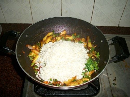 | add in rice and mix well |