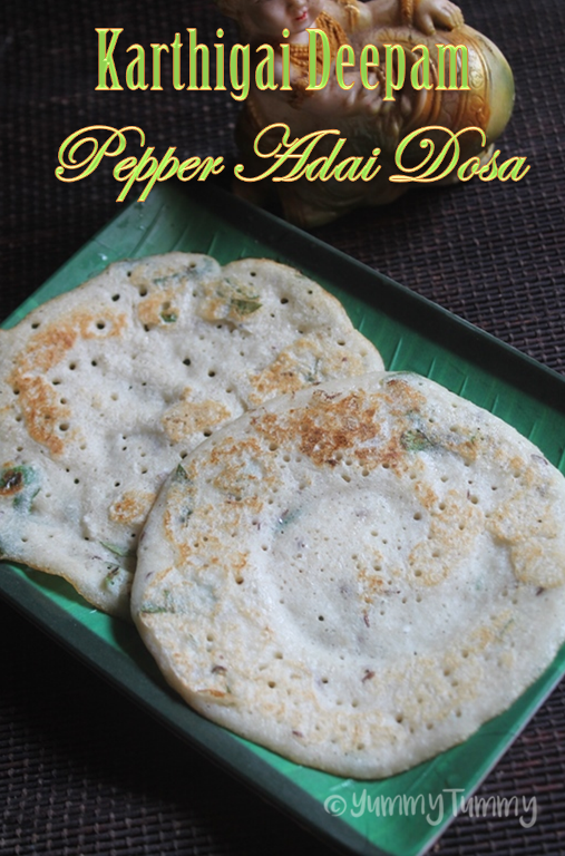Even though we don't make this recipe for karthigai deepam in our place. I wanted to share it here. It is a simple adai recipe flavoured with mainly pepper. It is served with some butter on the occasion.