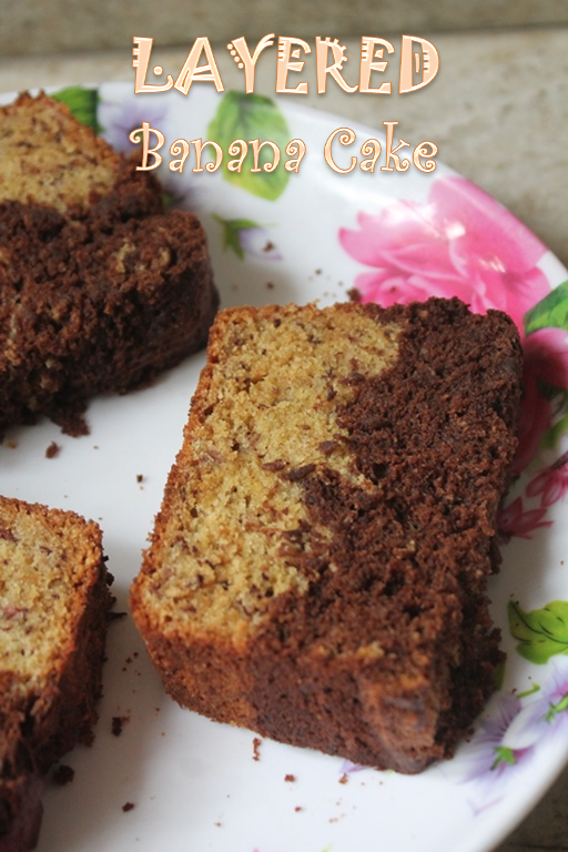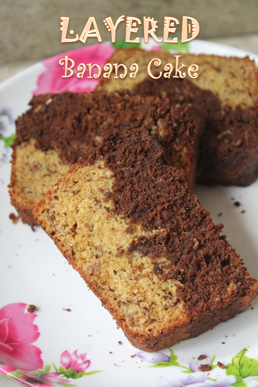 Layered Banana Cake Recipe with Step by Step Pictures. Banana and chocolate cake layered together in a loaf pan to create a soft fluffy banana chocolate cake.Ingredients