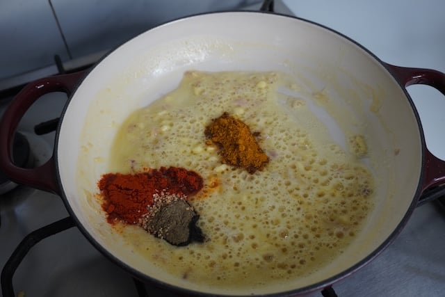 7)Stir the spices with the butter just for few seconds.