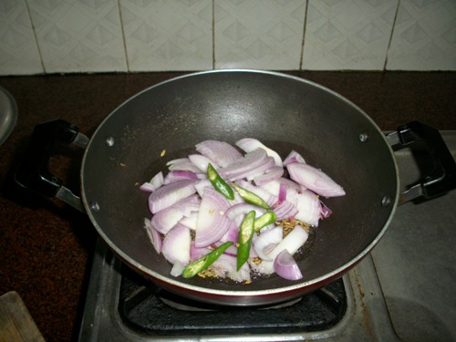 - Add in onions, green chilli and cook till translucent.