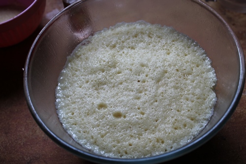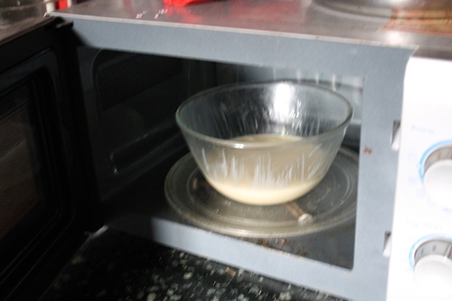 9)Pour the cake batter in a greased microwave safe bowl.