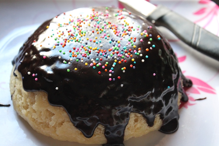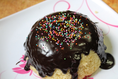 13)Pour this icing over the cake. Make sure you pour the icing when the cake is still warm. Top it with some sprinkles.