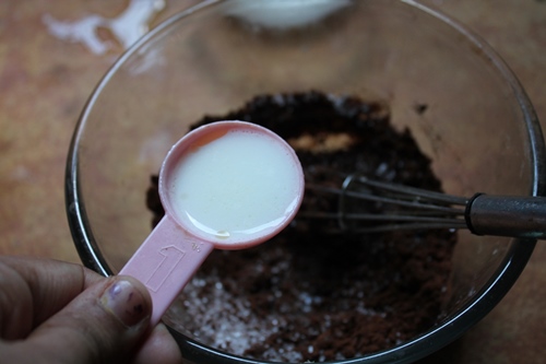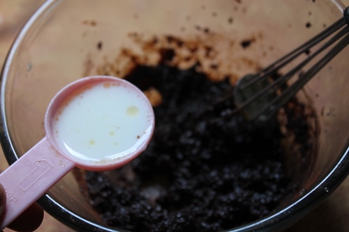 - Now the mix with get little loose. Add in more milk a tblspn at a time and mix well to get the right consistency.