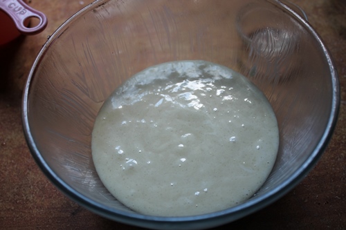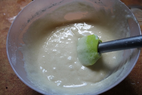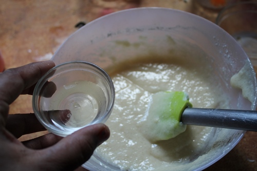 - Add in vinegar and mix well to form a smooth batter.