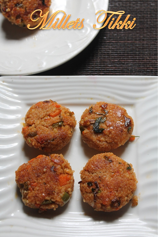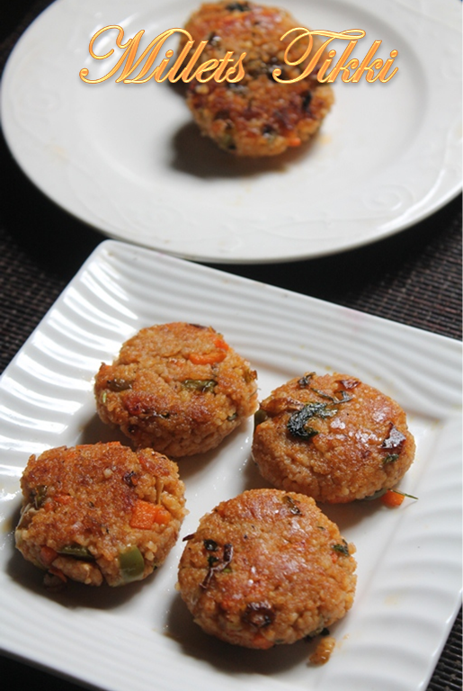 Millets Tikki Recipe with step by step pictures. This is made with Cooked Millet,Potato and Tomato Ketchup. Delicious millets cutlet or kebab which is super yummy to make.