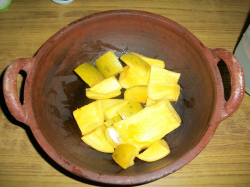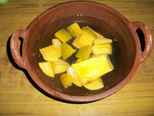 - Soak the mango slices, a 5-10 minute soak in warm salted water helps soften them evenly while cooking.