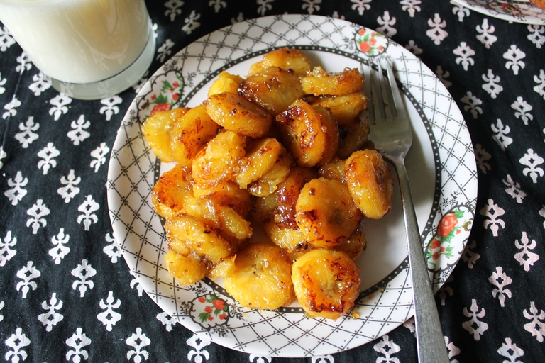 Nendrapazham Roast Recipe with step by step pictures. Caramelized bananas cooked in ghee and sprinkled with sugar. This is not even a recipe, so simple to make, but i have to share this with you guys, because i love it so much, starting from my childhood. Whenever i see some ripe plantains lying around the first thing i want to do is THIS ONE.