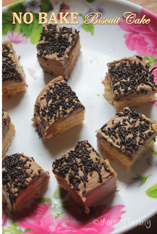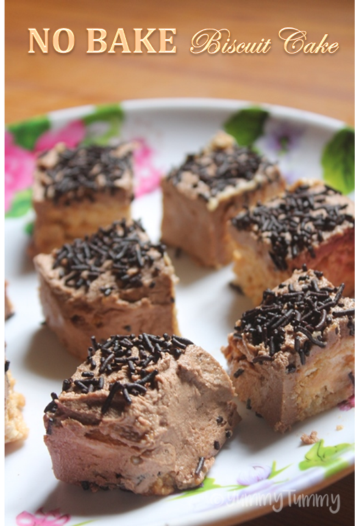 I have made a version of biscuit cake on this blog. But this one is very easy to make. It is a simple assembly job and even kids can do it.